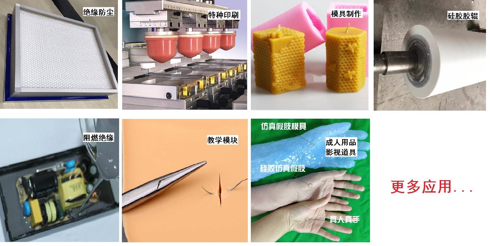 液體硅膠又叫液態(tài)硅膠,常應(yīng)用于制作硅膠制品、模具、移印膠頭、膠輥、灌封絕緣、成年人用具、硅膠假肢模型以及科研特殊領(lǐng)域。具有耐臭氧、耐酸堿腐蝕,因其良好的物理性能和可操作性,市場(chǎng)遍布面非常廣。